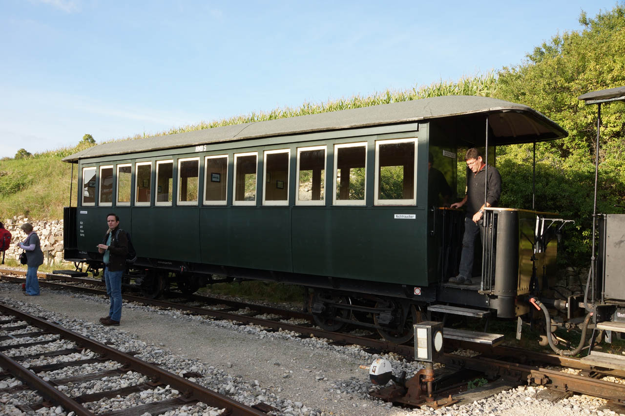 Drehgestell Personenwagen der Bauart Herbrand, vormals Brohltalbahn. Fast baugleiche Herbrand-Wagen liefen früher bereits auf der Härtsfeldbahn, leider ist kein originaler Wagen mehr erhalten.